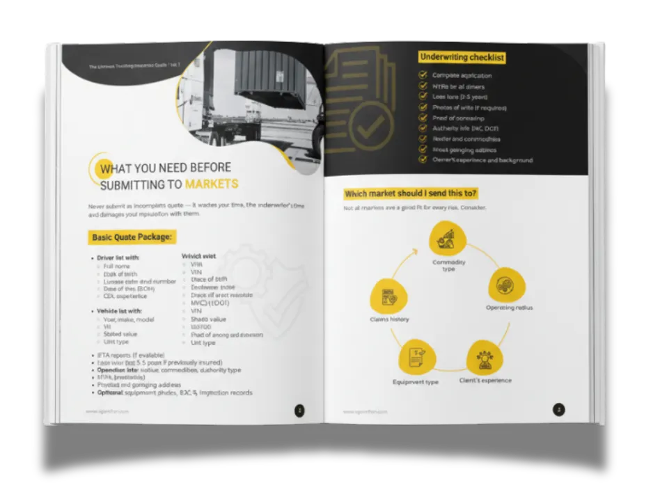 Esta guía de más de 300 páginas es tu mapa para entender, cotizar y emitir pólizas de seguros de camiones con confianza.